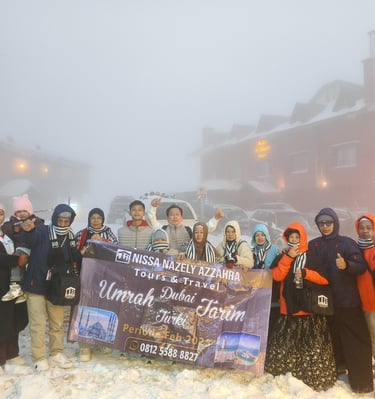 Namun, bukan hanya wisata biasa. Nissa Nazely Azzahra, (Jelajah Dunia Travel) juga menjadi pelita bagi mereka yang merindukan perjalanan spiritual. Program Umrah dan Haji kami dirancang dengan penuh ketulusan, bimbingan rohani, dan fasilitas terbaik, agar setiap langkah Anda menuju Tanah Suci menjadi pengalaman yang mendalam dan tak terlupakan.